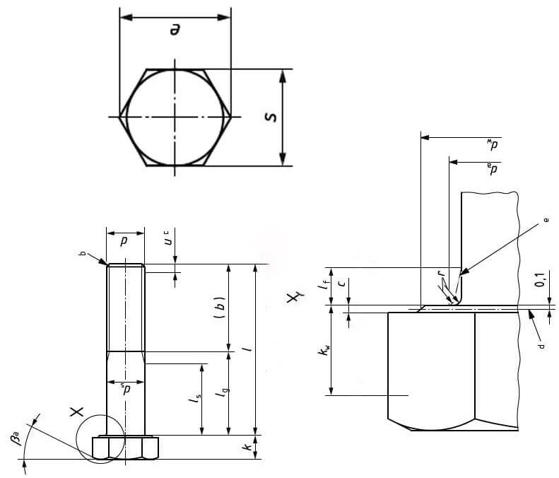 Kích thước của bulong bao gồm bước ren, chiều dài ren và dung sai ren, cũng như chiều cao đầu, đường kính đầu và kích thước vát. Dung sai đảm bảo rằng các bulong được lắp vừa vặn và an toàn vào các bộ phận ăn khớp. Các tính chất cơ học của bulong, chẳng hạn như độ bền kéo, độ bền chảy và độ giãn dài, cũng được xác định trong tiêu chuẩn.